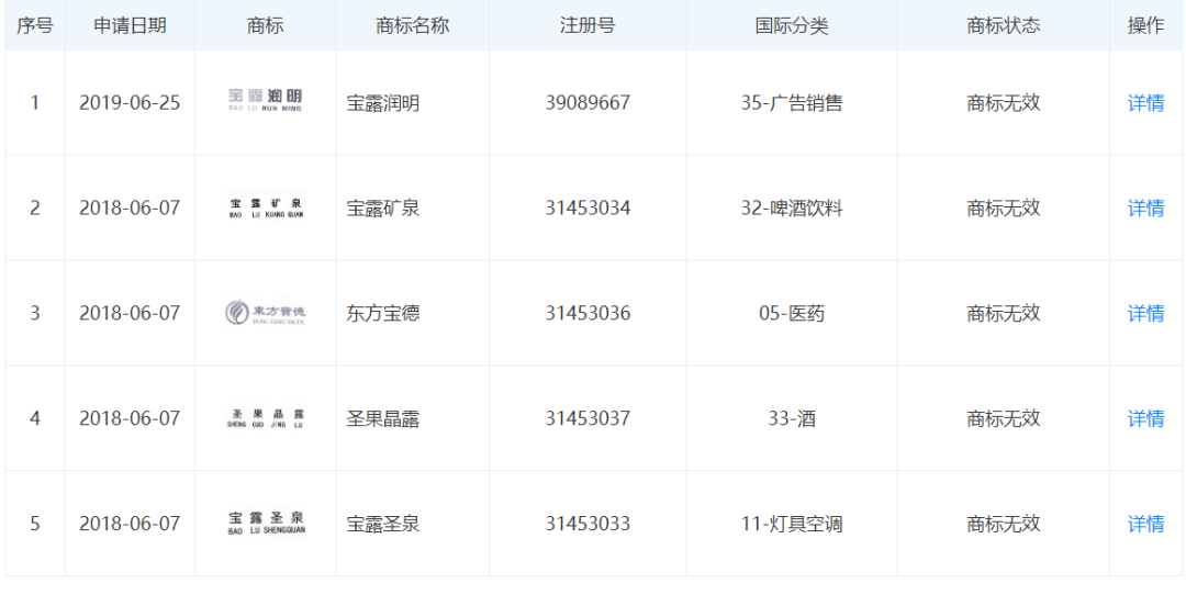 据天眼查APP显示,深圳市宝德生物科技有限公司(以下简称:宝德公司)成立于2017年7月6日,注册资本为6790万元,鹿培帅担任法人、执行董事,总经理,持股90%,叶人槐持股10%。该公司注册的商标“宝露润明”(35-广告销售)“宝露矿泉”“东方宝德”“圣果晶露”“宝露圣泉”显示“商标无效”。